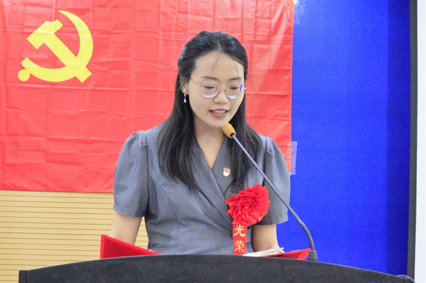 会上,举行了新发展党员入党宣誓及全体党员重温入党誓词仪式。先进党支部代表陈秋月、优秀党务工作者代表刘爱芳、优秀党员代表李金锐分别作了交流发言。