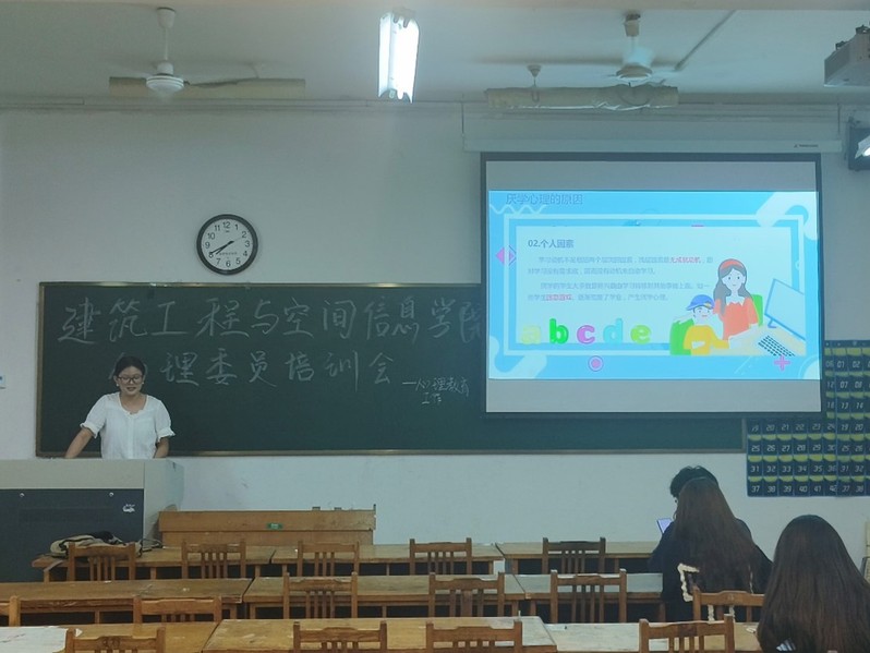 在培训会上,主讲人首先从家庭、个人、社会三个角度深入剖析了厌学心理产生的原因,并详细列举了厌学心理的常见表现,提醒在场的心理委员要密切关注同学们的心理状态,及时发现并关注潜在的厌学情绪,共同营造一个积极向上的学习氛围。随后,主讲人分享了八种调节厌学心理的方法,为心理委员们提供了具体的操作指南。这些方法包括:建立正确的学习观念、调整学习方法、增强学习兴趣、提高自我效能感、合理规划时间、改善人际关系、学会放松和减压、寻求专业帮助等。这些策略旨在帮助同学们克服厌学情绪,培养良好的学习习惯,增进同学间的相互了解和情感交流。