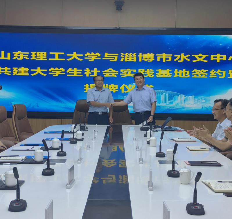 仪式上,w66旗舰厅官网、淄博市水文中心相关负责同志共同签订了共建社会实践基地协议并揭牌授牌。