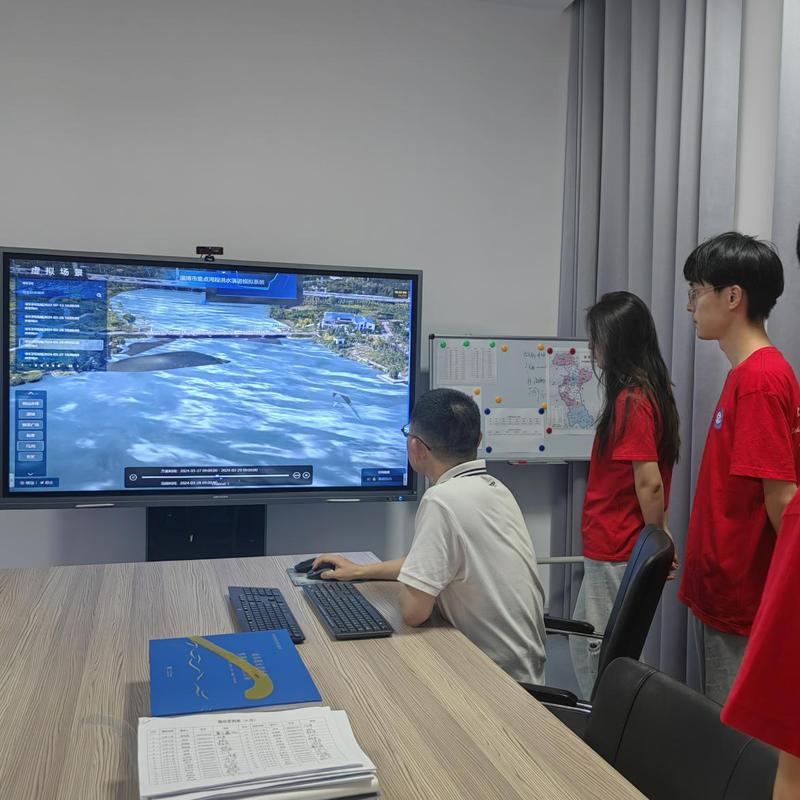 会前,淄博市水文中心负责人带领公司一行前往市水文数据中心,详细讲解了市水文中心的主要职责与负责范围,通过现代化、数字化、智能化手段展示了各主要河流的汛期及当前水流量,帮助实践团同学们了解水文测量现状。依次参观了放映室、情报室、预报室、水情科等,工作人员为实践团同学细致讲解各类水文知识,了解淄博市不同水文特征及其可能带来的影响等;在应急装备室,同学们看到了琳琅满目的专业水文仪器,并学习到了紧急情况下需要准备的各类应急物品。