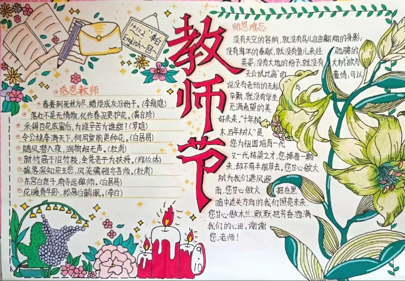 此次线上教师节手抄报活动不仅为师生们提供了一个展示才华、交流情感的平台,更让大家在创作过程中深刻体会到了教师的辛勤付出和无私奉献,未来将继续举办更多类似活动,为校园文化生活增添更多色彩。