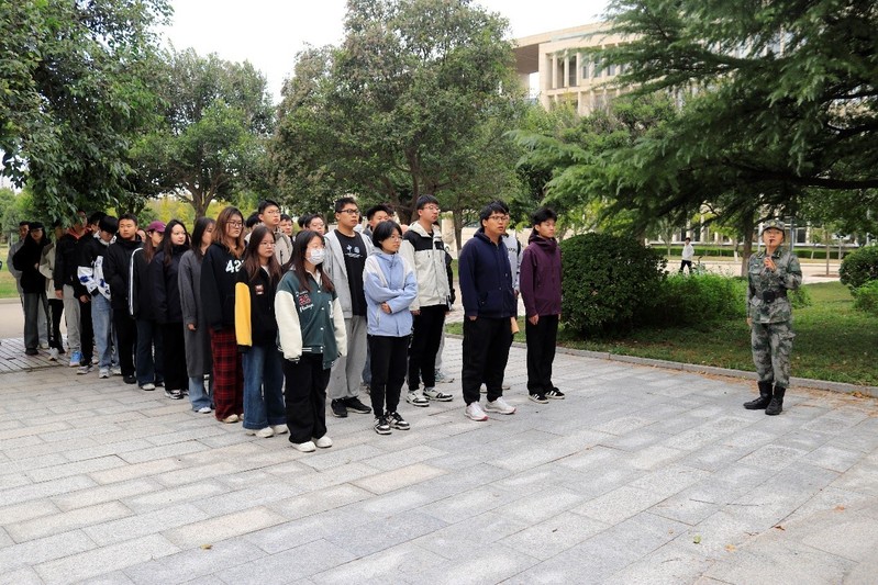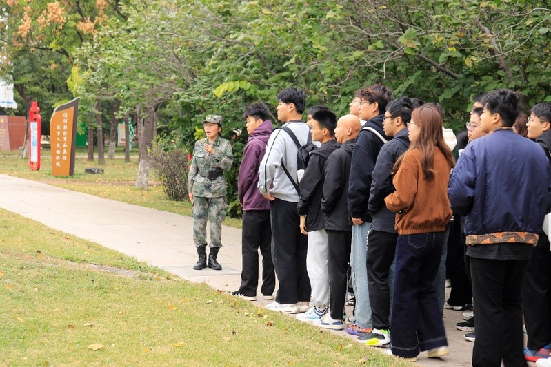 活动伊始,引导员带领同学们进入国防教育主题园区参观,依次介绍了花园内七条步道,分别是光荣传统和红色基因、淄博革命印记和红色地标、淄博籍将军和英模、征兵政策和优秀退伍军人代表、理工大学国防教育和征兵工作成效、国防和军队设新成就新气象、先进武器装备和大国利剑七个方面内容。