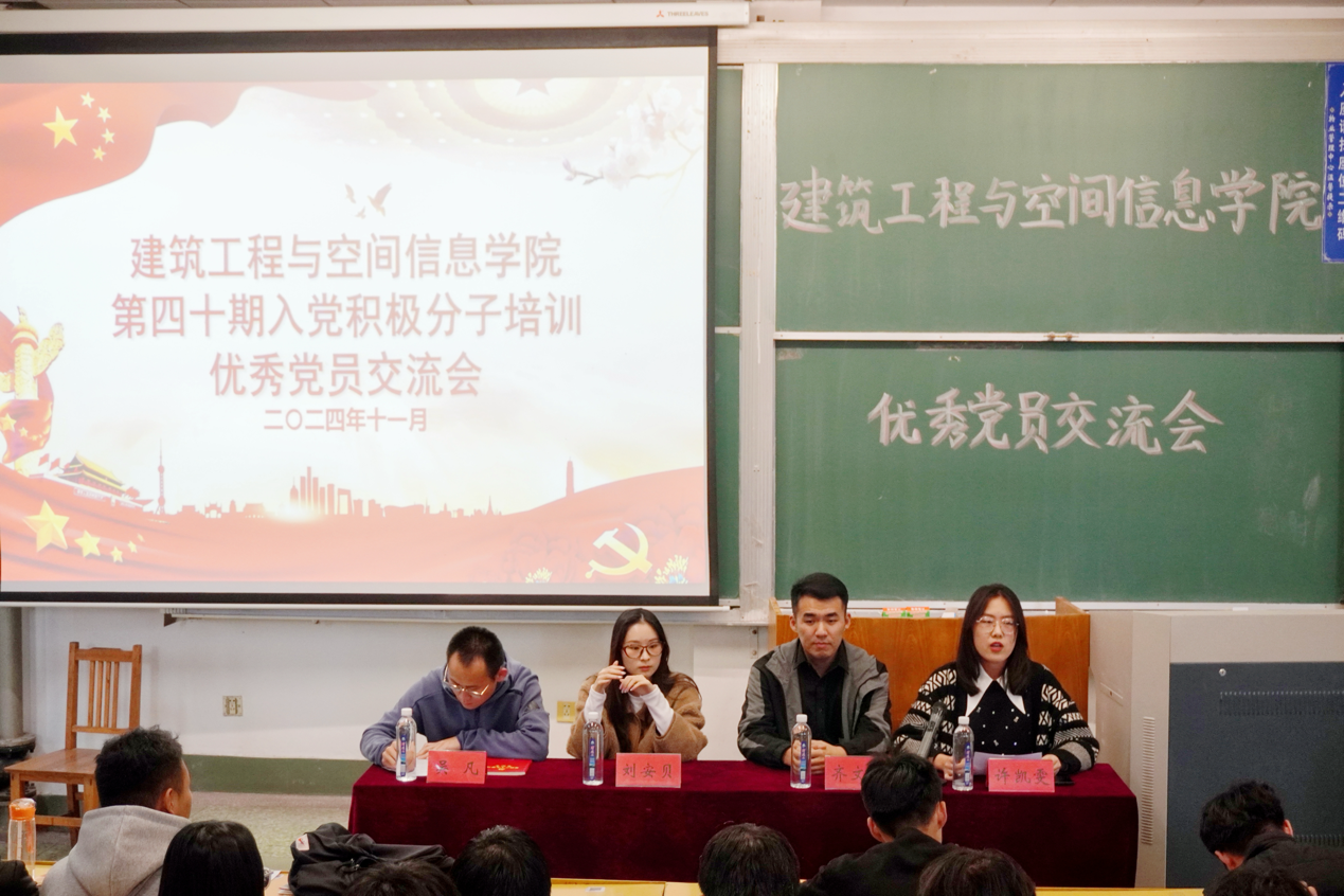11月2日上午,公司于15号教学楼104教室举办优秀党员交流会。本次活动由许凯雯,刘安贝,吴凡,齐文杰四位优秀党员主讲,公司第四十期入党积极分子参加。