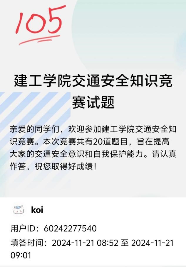 道路千万条,安全第一条。交通安全关乎我们每一个人的生命与财产安全,无论何时何地,交通安全都不可忽视。为了增强同学们交通安全意识与应对交通问题的自我保护能力,w66利来旗舰厅微尘志愿者协会于11月21日至11月24日举行“安全出行,交通文明”交通安全知识竞赛活动。