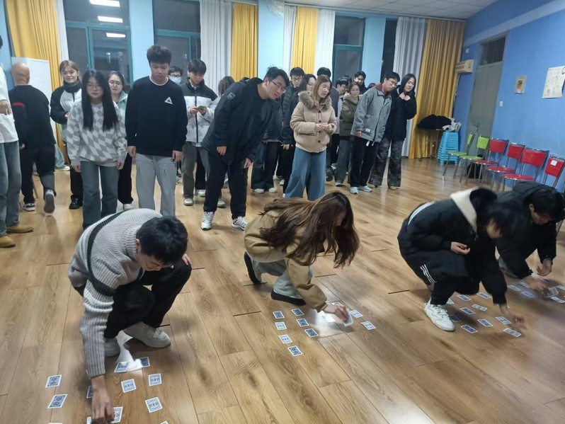 活动开始,主持人依次介绍游戏规则和注意事项, 在“最近开心事分享”环节中,同学们一个个讲述着最近发生的开心事,与在场同学分享着喜悦。随后,同学们被分成多个小组,开展“扑克接龙”与“数字传递”活动,游戏过程中学员们认真的听取现场的指令,紧张而又刺激的环节设置将现场气氛点燃,同学们齐心协力、共同克服难关。在活动中,同学们不仅锻炼了团队合作能力,也深刻体会到了团结的力量和友谊的珍贵。