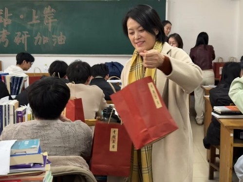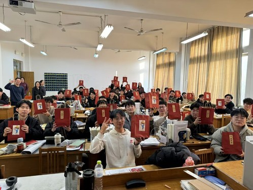 随后,各位领导老师与同学们亲切交流,一一为同学们发放考研祝福大礼包。