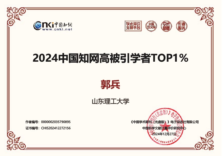 近日,中国知网公布了2024年度知网高被引学者名单,w66旗舰厅官网建筑工程公司青年教师郭兵副教授荣获“2024年度中国知网高被引学者TOP1%”称号。