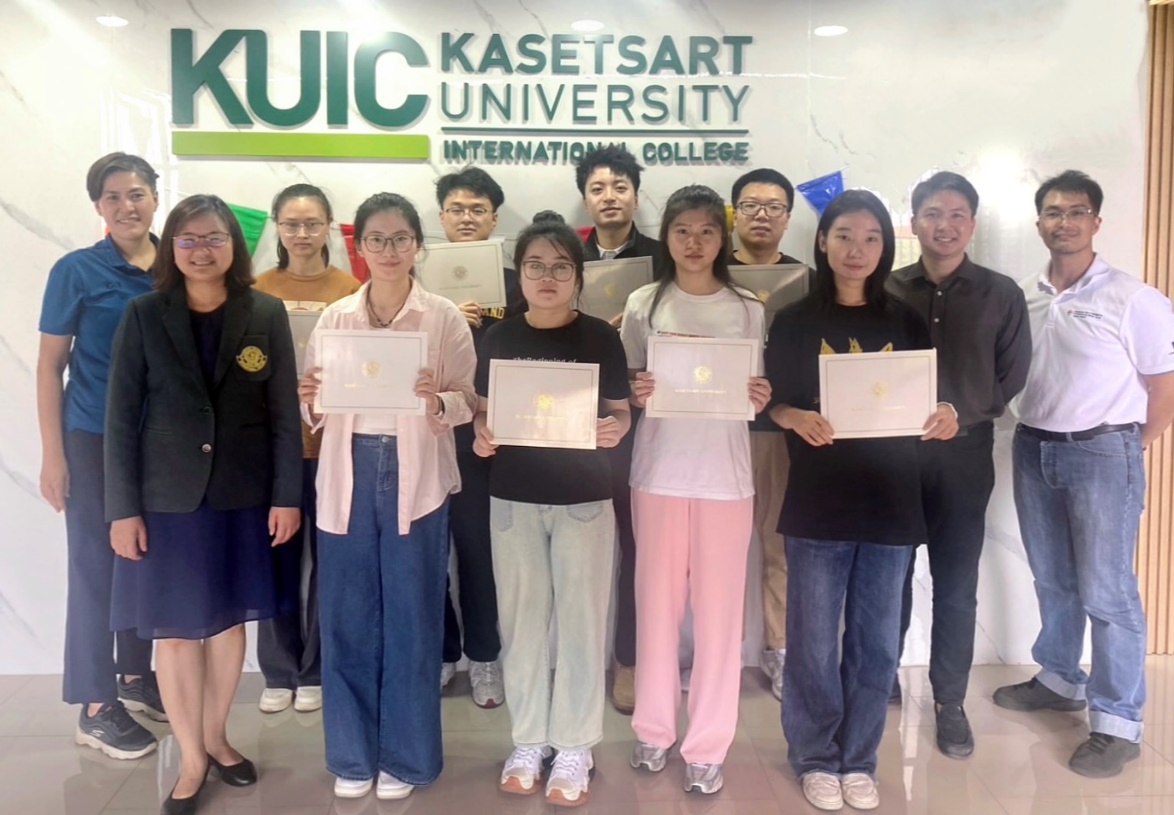 在项目结束之际,泰国农业大学副董事长Ladawan Puangchit女士与国际公司的相关领导为公司研究生举行了隆重的欢送会,并颁发结业证书。研究生向与会领导及教师表达了谢意,结合学习和生活经历,分享了自己的心得体会,并对今后联合培养项目的开展献言献策。欢送会后,师生代表合影留念,为此次的学习交流画上了圆满的句号。