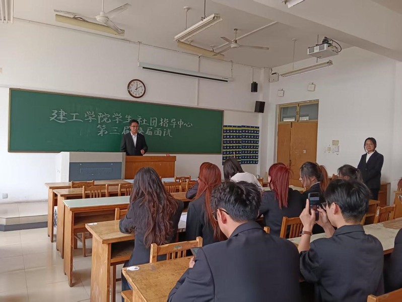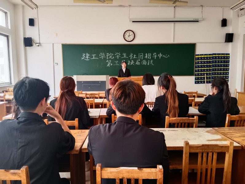 面试开始前,参与竞选的同学们已在教室外有序排队,大家神情专注,精心准备着即将到来的挑战。他们身着正装,手持精心撰写的演讲稿,充分展现出对此次竞选的重视。面试过程中,每位同学依次上台,进行个人展示与答辩。他们从自身优势、工作经验、对岗位的理解以及未来工作规划等方面进行阐述,表达了为员工社团指导中心服务、推动社团发展的坚定决心。评委们认真聆听,针对同学们的回答进行提问,从不同角度考察大家的应变能力、组织能力和团队协作精神等综合素质。现场气氛紧张而有序,同学们沉着冷静,充分展现出建工学子积极向上、敢于挑战的精神风貌。