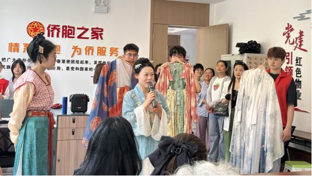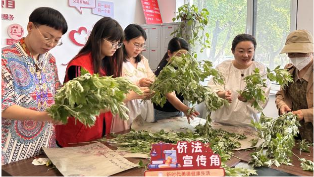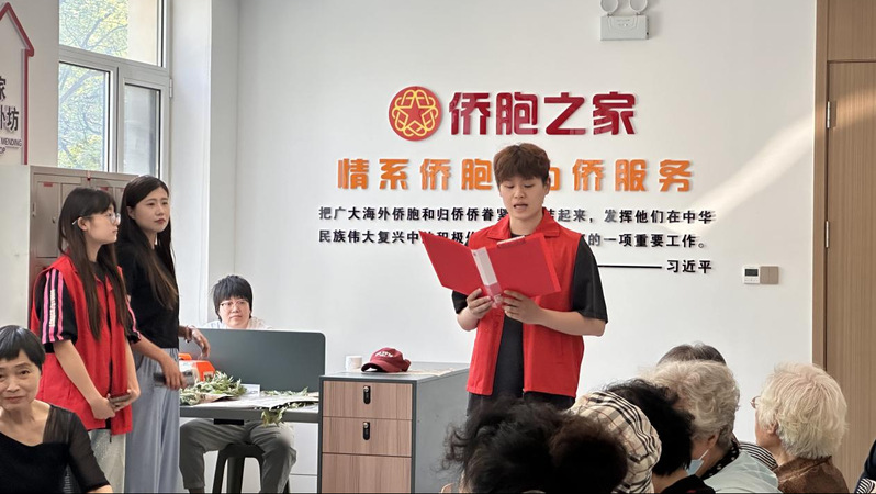 宣讲结束后,员工第三党支部党员带领侨胞们制作艾草花束、包粽子,协助开展汉服文化讲解活动,通过民俗体验增进侨胞对端午习俗的了解,进一步营造和谐友爱的社区氛围,丰富居民文化生活。