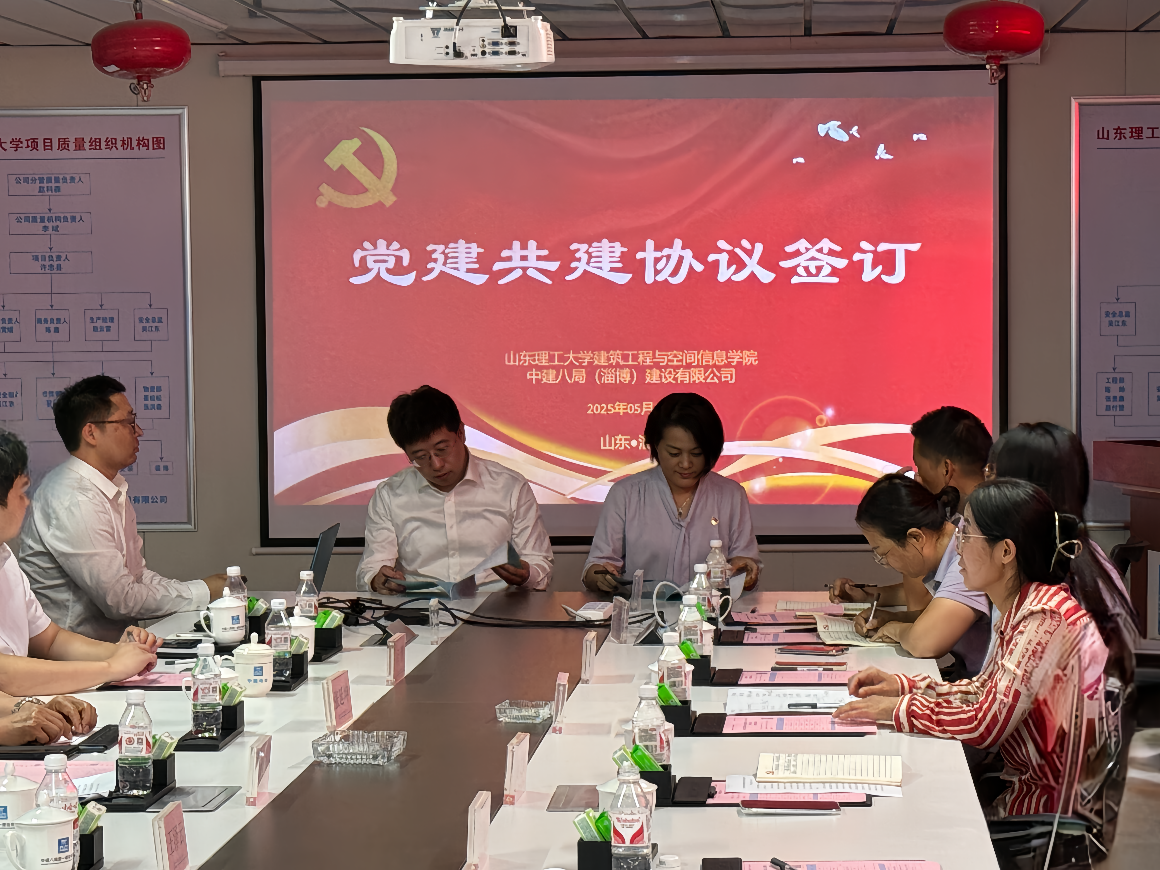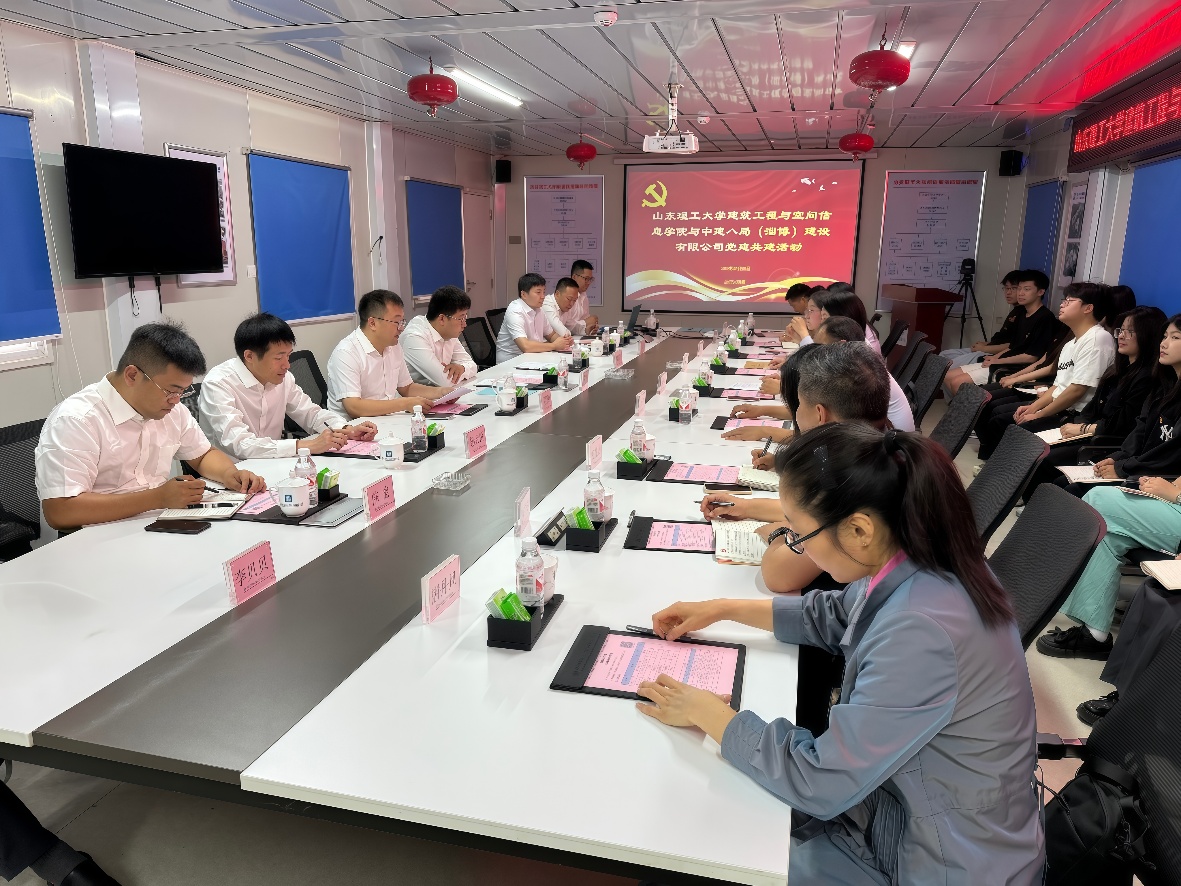5月29日上午,公司党委与中建八局(淄博)建设有限公司党支部党建共建活动在w66旗舰厅官网员工宿舍楼项目会议室举行,公司党委书记黄文娟、副书记王延深出席,工程管理系师生党支部全体师生党员参加活动。