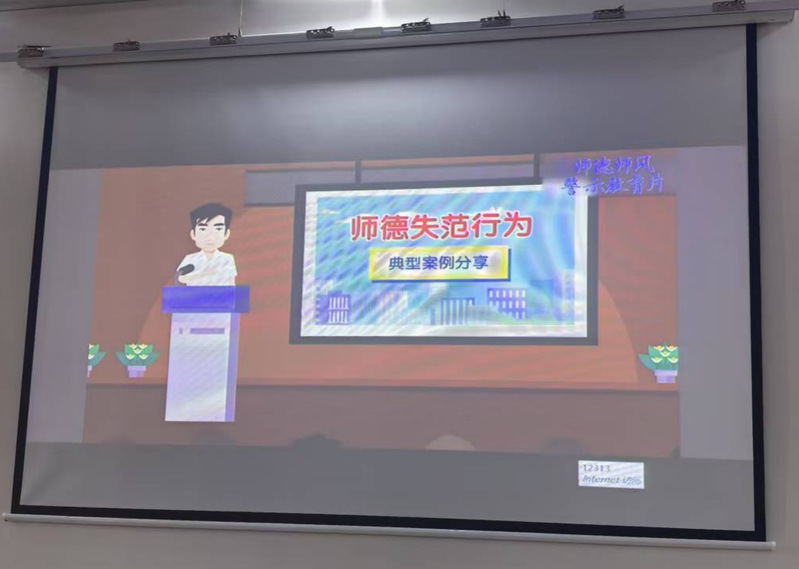 接着,全体教师共同观看了师德师风警示教育片,通过真实案例的展示与剖析,警醒大家时刻保持清醒头脑,引导全体教师以案为鉴、以案明纪,对照查摆自省,做到警钟长鸣。