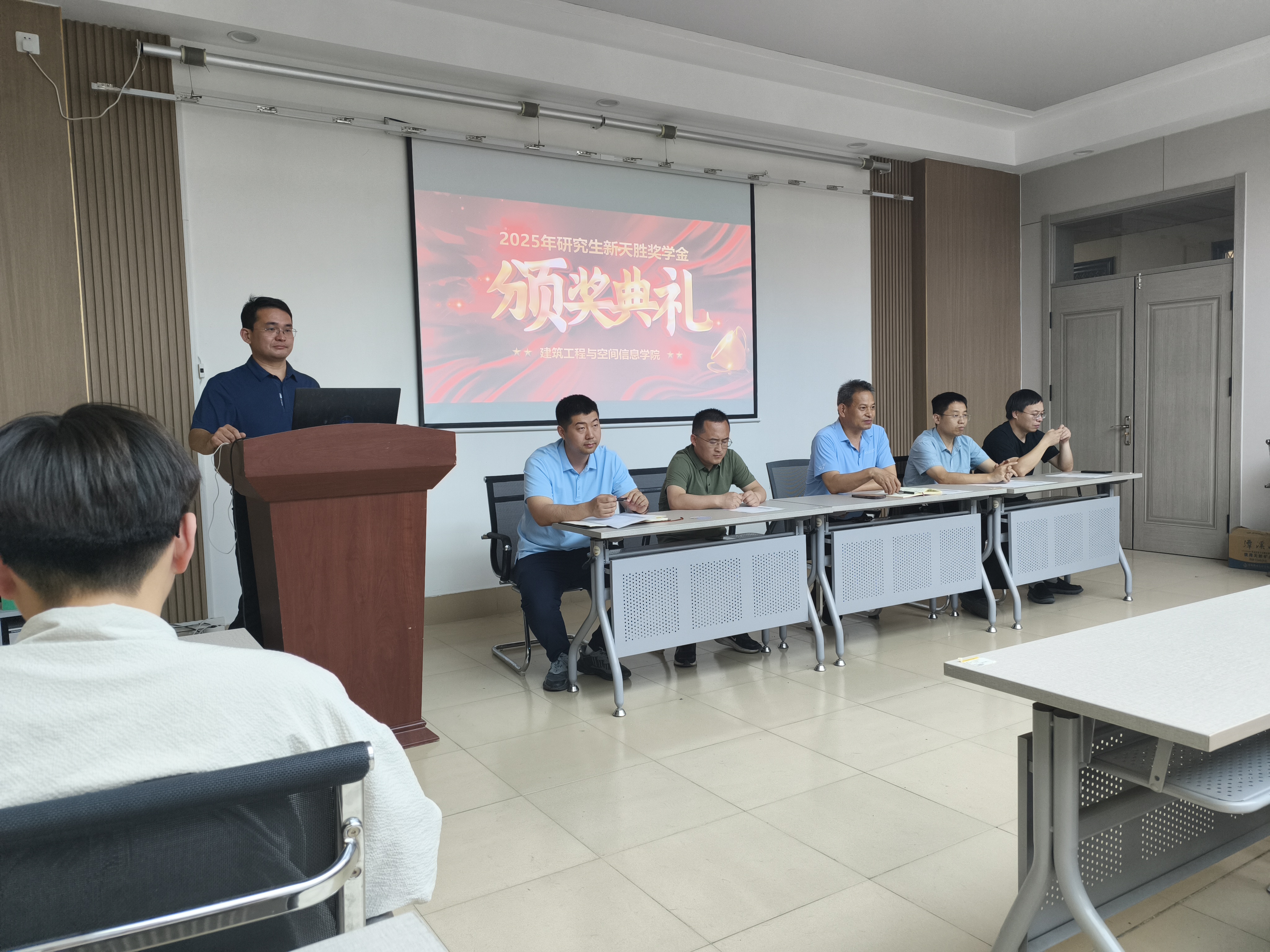 为表彰优秀学子,激励全体研究生奋发向上、追求卓越,公司于2025年6月12日在12教313报告厅隆重举行2025年度研究生新天胜奖学金颁奖典礼。经理贾致荣、副经理王春光、道桥系主任张世义、测绘系主任逯跃锋、青年教师辅导员窦法楷以及全体在校研究生出席活动。本次颁奖典礼由学术副经理张文刚主持。