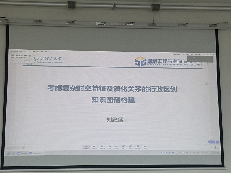本周作报告的二年级研究生分别是刘纪猛(线上)、刘盼盼、任琛和李友恒。现场交流主要围绕“考察复杂时空特征及演化关系的行政区划知识图谱构建”“基于多元数据的黄河三角洲生态脆弱性评价及驱动机制分析”“青藏高原草地结构类型与碳汇产品的时空格局演变和预测分析研究”以及“北半球落叶阔叶林分析上线对气候变化的响应”四个主题展开。本次研讨会为测绘和地信专业的同学提供了宝贵的交流学习机会,也为后续可能的跨学科合作埋下了种子。