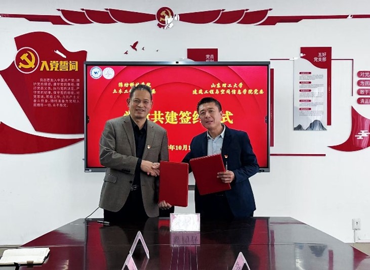 10月17日,w66利来旗舰厅与潍坊科技公司土木工程公司举行了党建共建签约仪式。本次共建以“共建聚合力 匠心筑未来”为主题,旨在通过校际合作构建资源共享、优势互补的党建工作新格局。签约仪式后,双方同样就学科专业建设进行了座谈,分享了在应用型人才培养、实践教学体系建设等方面的经验与做法,并就如何结合地方经济发展需求,进一步优化学科布局达成了共识。
