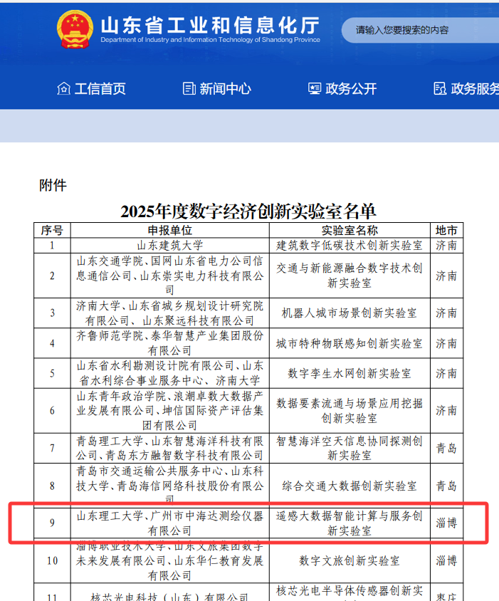 近日,山东省工业和信息化厅公布2025年度山东省数字经济创新实验室名单,公司牵头的遥感大数据智能计算与服务创新实验室成功获批。山东省数字经济创新实验室聚焦数字经济领域关键核心技术和重大应用需求,开展技术创新、成果转化和人才培养的重要平台。