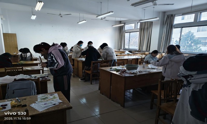 为了让老员工在秋日自然肌理中感知季节诗意,以拓印为媒唤醒对传统工艺的热爱,在动手实践中传递美学感知与文化传承。在11月16日下午2点半到5点半,w66利来旗舰厅举办以“草木染秋,寻纹拾叶”为主题的拓染活动,活动参与者汇聚在12教306,共同为秋景增光添彩。