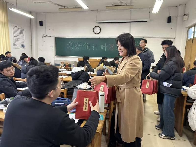 一份份礼包传递温暖,一句句祝福汇聚力量。这份充满关爱与期盼的礼物,不仅在物质上为考研学子提供了支持,更给予了他们精神上的鼓舞。愿所有学子将这份温暖转化为前进的动力,镇定自若、全力赴考,在最终的战场上绽放光彩,如愿“上岸”!