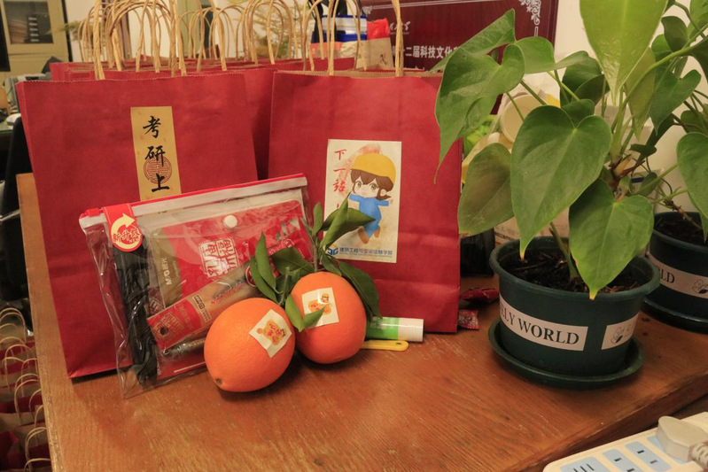 随后,领导、老师们亲手将饱含温情的“考研助力礼包”送到学子手中。礼包内精心配备了尺子、涂卡笔、中性笔等考试必备文具,助力同学们在考场上从容书写、稳健发挥;特别添加的两个橙子,寓意“心想事成、前程似锦”,承载着公司对学子们的美好祝愿。