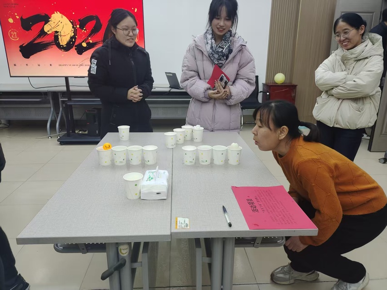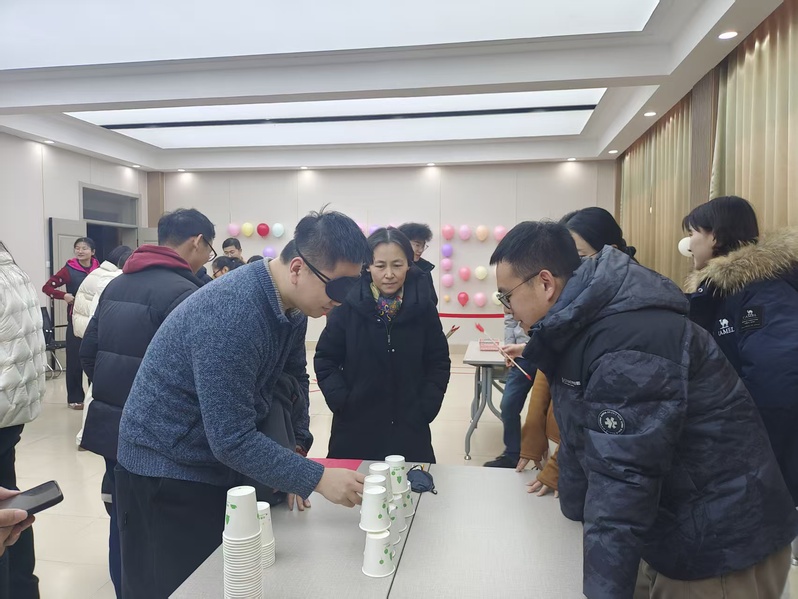 本次活动以分组竞赛为核心形式,精心设计的七大趣味项目横跨智力协作、技巧比拼等多个维度,为老师们搭建起展现风采、凝聚情谊的欢乐平台。活动现场笑语盈盈,老师们暂别工作的繁忙,全情投入趣味比拼:牌桌之上,沉着思索间暗藏谋略,默契配合中彰显智慧;接力赛道,衔接流畅如行云流水;蒙眼叠纸杯挑战里,老师们独自摸索、精准操作,在视觉受限的挑战下专注搭建,指尖的稳准与耐心尽显巧思;投壶场地中,凝神静气间抬手投掷,举手投足尽显雅致韵味;搭建与竞速项目中,分工明确、互帮互助,专注操作与耐心指导并行,在限时挑战中凝聚起攻坚克难的强大合力;夹乒乓赛场内,大家屏气凝神、指尖灵动,精准操作引来阵阵赞叹。