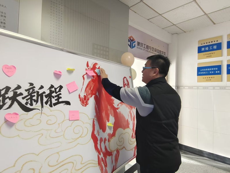 活动现场的布置充满新春暖意,吉祥标语点缀其间,特设的“新年寄语墙”上,一张张便签写满了老师们对新年的期许与祝福,传递着温暖与正能量。从测绘、地信、工管、土木等专业系部到行政岗位,不同岗位的教职工们组队参赛,在互动中增进了解,在协作中加深情谊。大家不分彼此、互相鼓劲,胜利时共同欢呼,失误时彼此安慰,生动诠释了公司教职工团结友爱、积极向上、乐于拼搏的良好精神风貌。